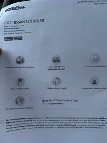 2022 NISSAN SENTRA SR $88 Weekly tax in