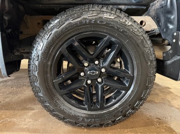 18” BLACK ALLOYS WITH LIKE NEW A/T TIRES