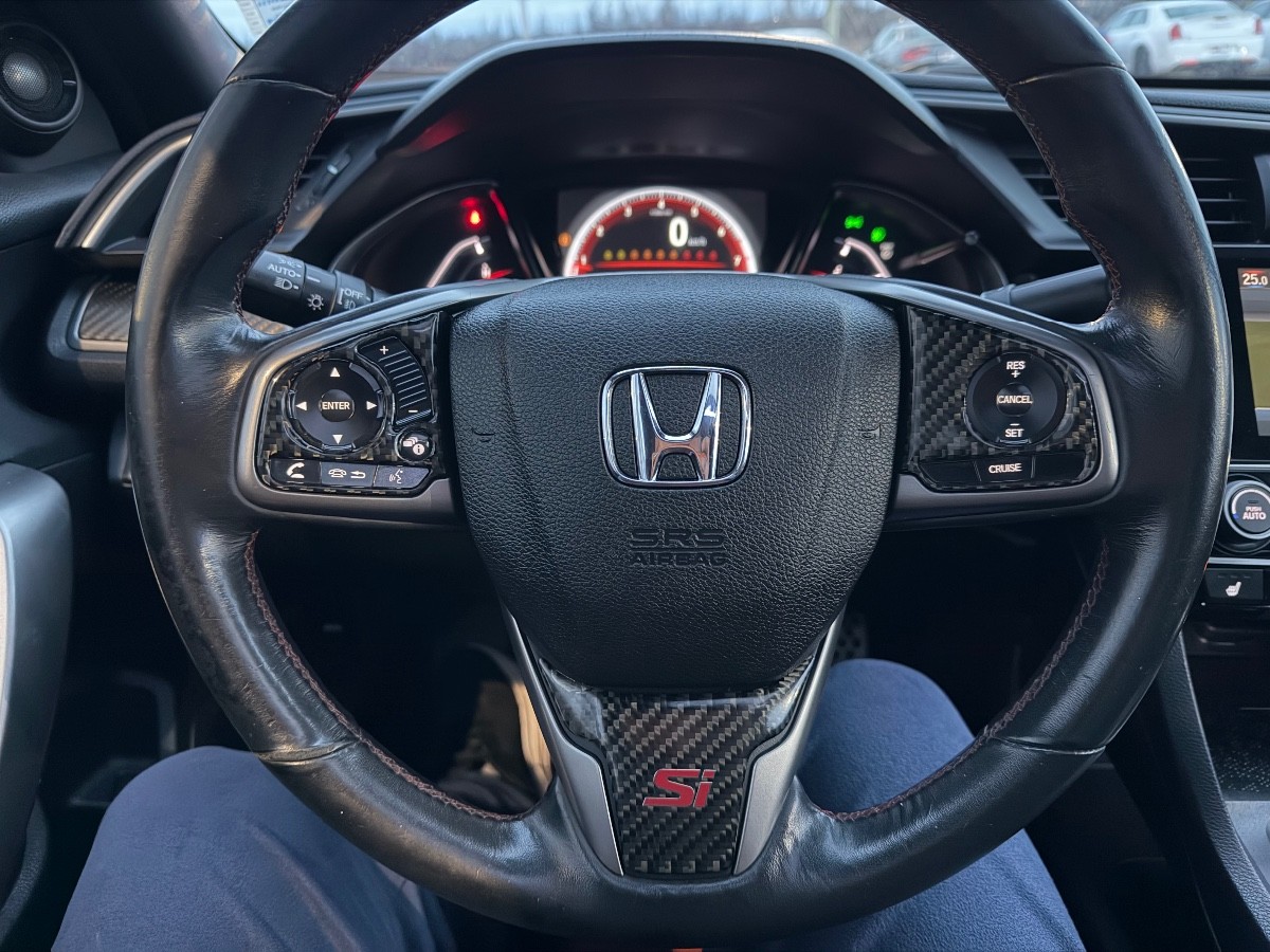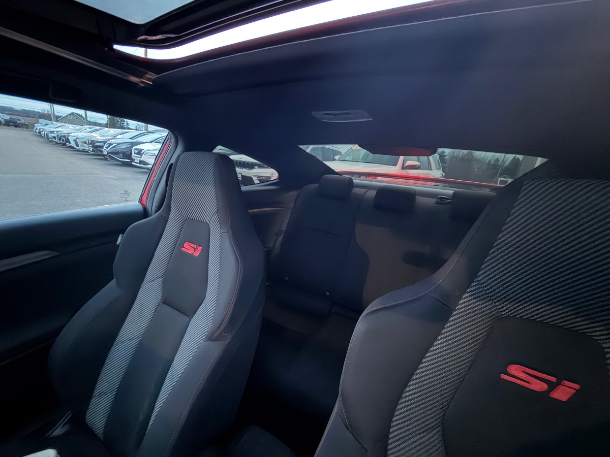 🔹 Si-Specific interior trim: bolstered sport front seats with red stitching and Si logos